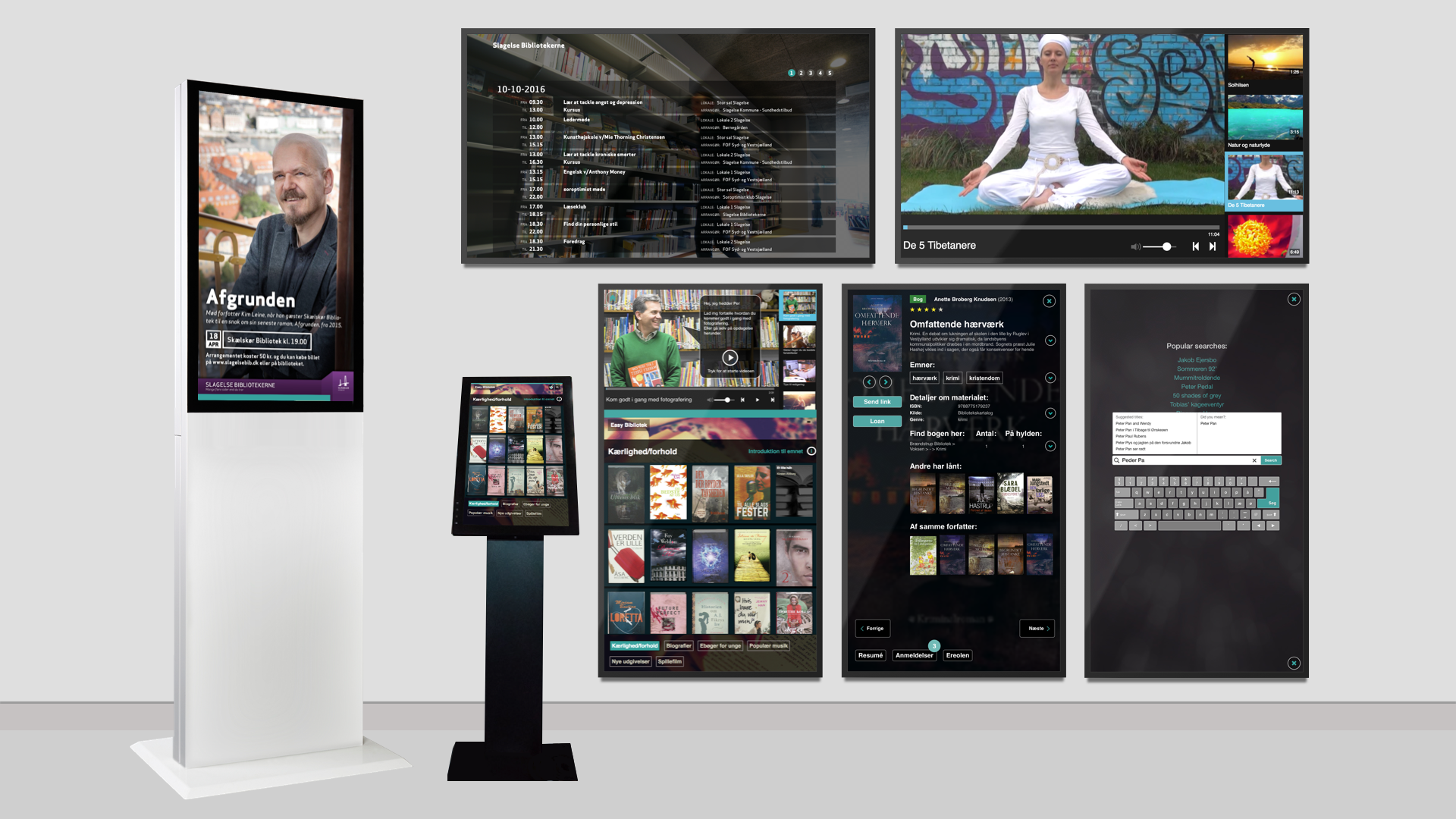 The easyScreen portfolio offers either interactive communication through our tablet and print-based products, such as Digital Shelfs, EasyWay and Video Host, or automated communication to users based on material retrieved from the library website or library base.