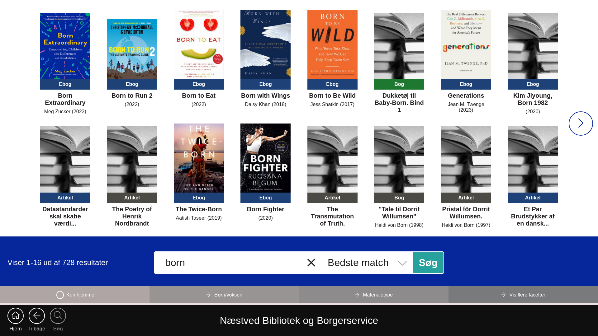 De mest populære søgninger vises i toppen af skærmen, og herudover tilbydes reservering, læs anmeldelser og flere andre serendipitets-funktioner i lighed med postvisningsfunktionen på Digitale Hylder.