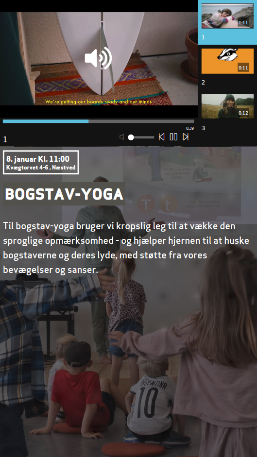 VideoVært-funktionen kombinerer videoformidling med andre easyScreen-funktioner som f.eks. Digitale Hylder eller fremvisning af tekst- og billedslides på samme skærm på samme tid.